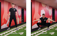 Senk deg rett ned, slik at vekten din holdes på fremre ben og på hælen. Dette skal kjennes i utsiden av hofta, på benet du står på.