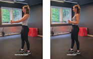 Husk at vekten skal være på hælen, armene holdes rette og ryggen nøytral rett under hele øvelsen.