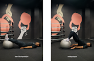Tenk at du skal presse navlen ned mot gulvet. På den måten får du en liten krum i korsryggen.